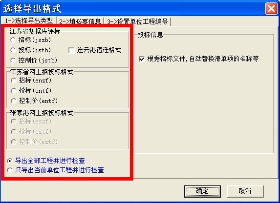 6.甲方在完成“招标文件”编制后,需要导出“招标文件”,该功能支持江苏省所有的电子招投标格式的导出。