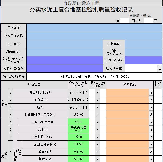 《城镇道路工程施工质量验收表格》(CJJ1-2008)