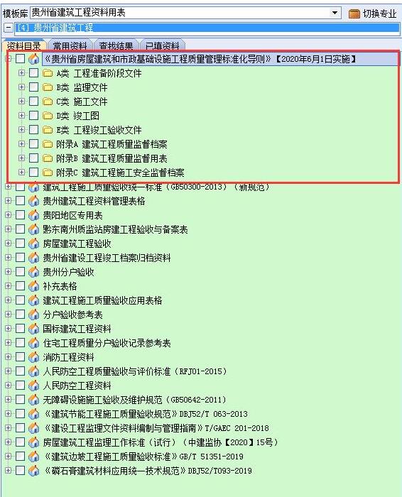 贵州建筑《建设工程监理文件资料编制与管理指南》T/GAEC 201-2018 贵州省建筑工程资料管理配套用表 贵州省《建筑工程施工强制性条文检查记录》(2013版) 贵阳市地区专用表格(06版),黔东南州地区专用表格 贵州省房屋建筑工程验收程序及要求配套资料 贵州分户验收资料用表 《建筑工程施工质量验收统一标准》GB50300-2013 配套使用新版下属规程: 《GB50202-2018 建筑地基基工程施工质量验收标准》 《GB50210-2018 建筑装饰装修工程施工质量验收标准》 《GB50204-2015 混凝土结构工程施工质量验收规范》 《GB50303-2015 建筑电气工程施工质量验收规范》 《GB50243-2015 通风与空调工程施工质量验收规范》 《GB50203-2011 砌体结构工程施工质量验收规范》 《GB50208-2011 地下防水工程质量验收规范》 《GB50209-2010 建筑地面工程施工质量验收规范》 《GB50601-2010 建筑物防雷工程施工与质量验收规范》 《GB50207-2012 屋面工程质量验收规范》 《GB50206-2012 木结构工程施工质量验收规范》 《GB50669-2011 钢筋混凝土筒仓施工与质量验收规范》等